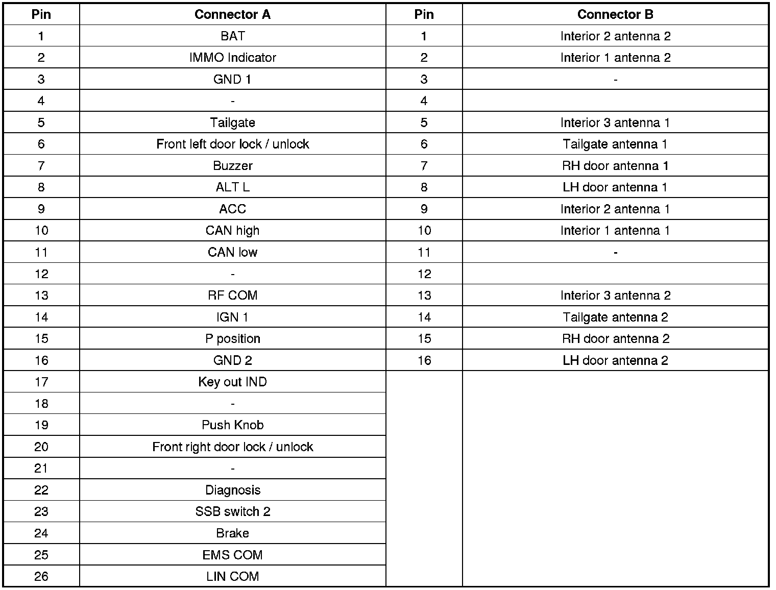 Connector Pin Information