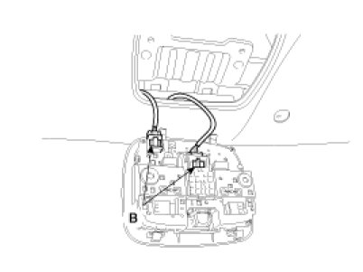 4. Disconnect the sunroof switch and lamp connector (B) and then remove the overhead console lamp (A).