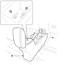 7. After loosening the console mounting screws and bolts, remove the floor console assembly (A).