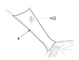 1. After loosening the mounting screw, remove the front pillar trim (A).