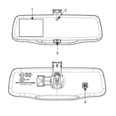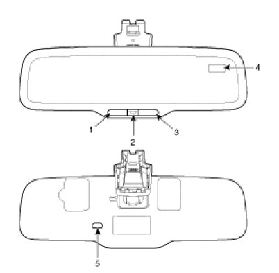 (1. Mirror button2. Rearward looking sensor3. Compass button4. Direction indicator5. Front looking sensor)