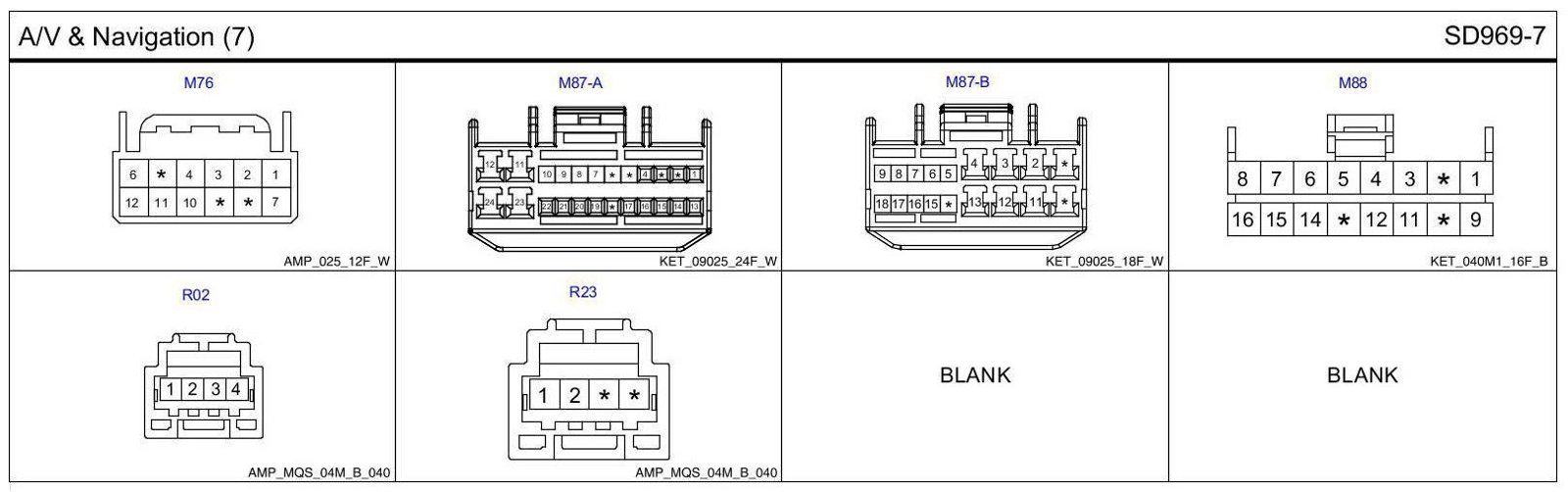 A/V & Navigation (7) Connector Pin Outs: