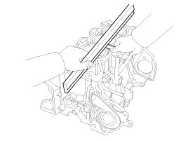 (4) Apply liquid sealant on the bottom of the cylinder block. Continuous bead of sealant should be applied to prevent any path from oil leakage.