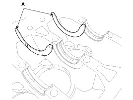 Install the 2 thrust bearings (A) on both sides of the No.3 journal of the cylinder block with the oil groove facing out.