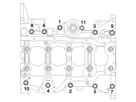- The main bearing cap bolts are tightened in 2 progressive steps.