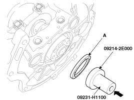 (2) Using SST (09231-H1100, 09214-2E000) and a hammer, tap in the oil seal (A) until the rear oil seal face is aligned with the cylinder block assembly rear face.