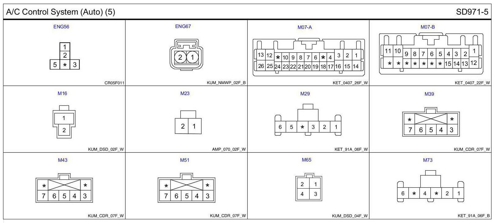 A/C Control System (Auto) (5) Connector Pin Outs: