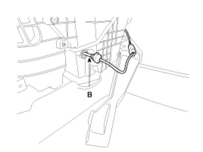 4. Remove the evaporator temperature sensor (B), by pulling it after rotating 90° in a counter clock wise direction.