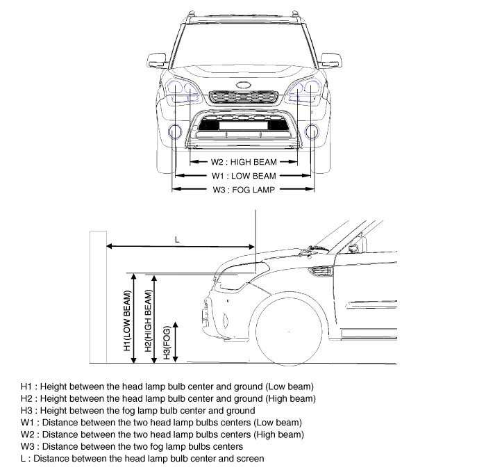 The front fog lamps should be aimed as the same manner of the head lamps aiming.