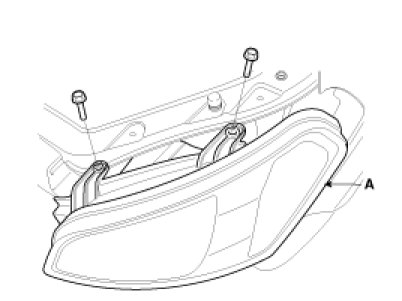 3. Loosen the mounting bolts (2EA) of head lamp. Remove the head lamp assembly (A) after disconnecting the lamp connectors (B).