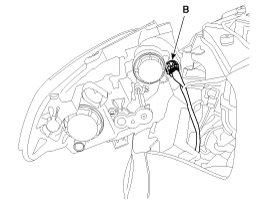 8. Turn the bulb socket (A) counterclockwise and remove the turn signal lamp high bulb (B).