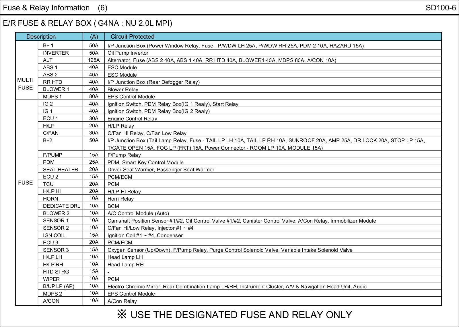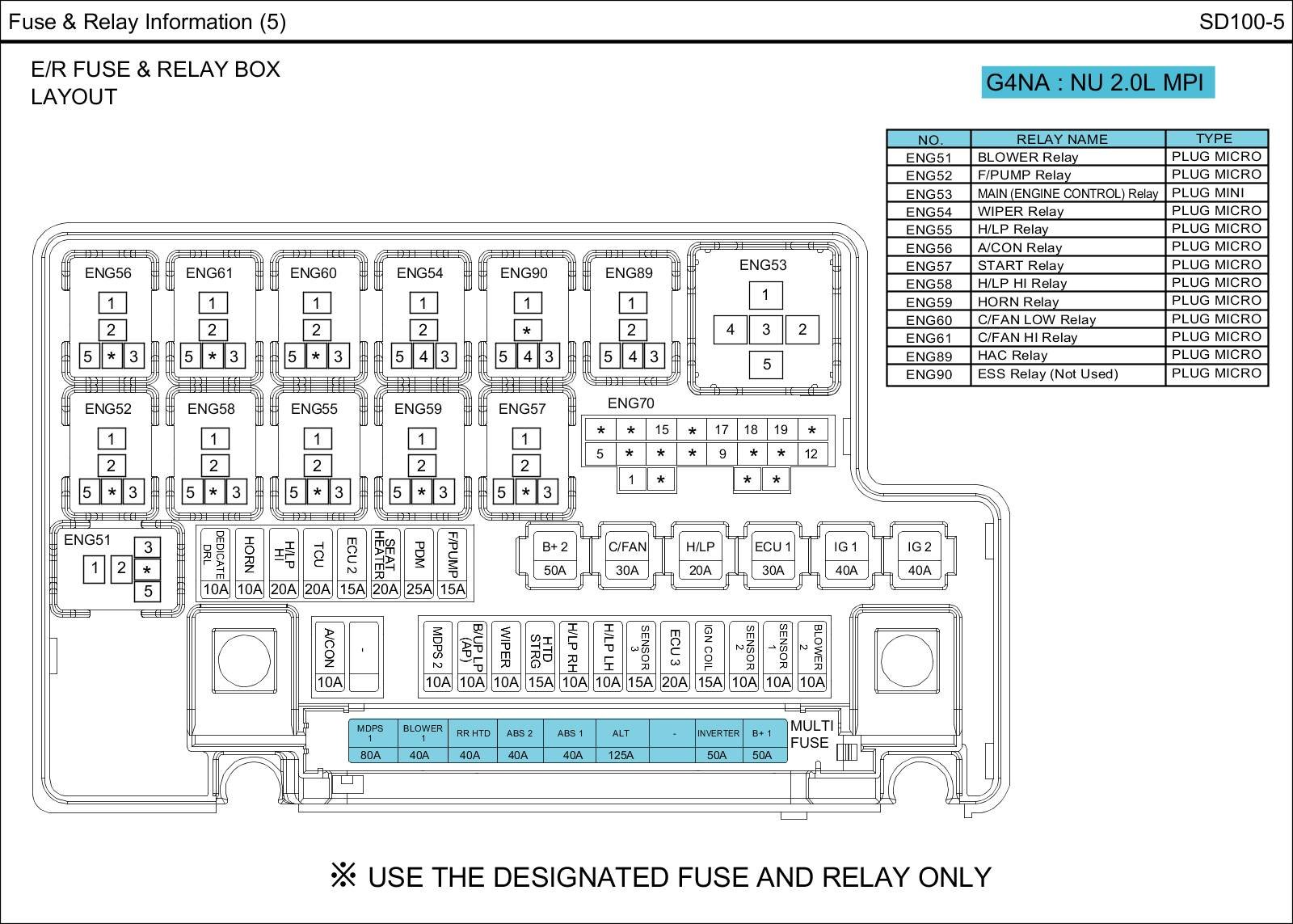 E/R Fuse & Relay Box Circuit Details: