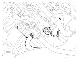 3. Disconnect the vapor hose (B) which is connected to the intake manifold from the PCSV.