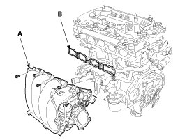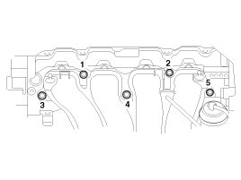 - When installing the intake manifold, tighten the bolts and nuts with pre-torque first, and then tighten the bolts and nuts with specified torque in the sequence shown.