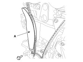 Install the timing chain tensioner arm (A).