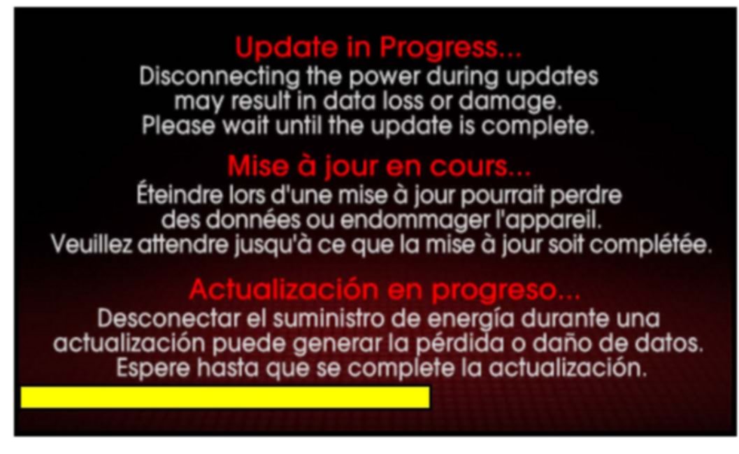 When rebooting, screen will go dark for approximately 20 to 40 seconds, this is normal. System will reboot 2 times to perform the update.