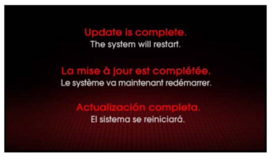 15. After updating is completed, the display shown on the right will appear for a few moments; then the UVO system will be rebooted again.