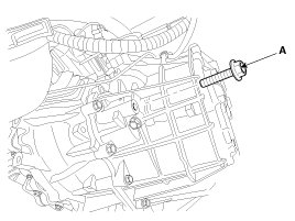 2. Drain the manual transaxle oil after loosening the drain plug (A).