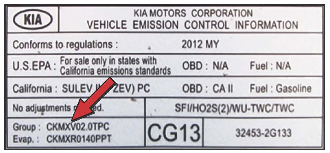 ^ Type "Group:" followed by the group number from the Vehicle Emission Control Information label in Step 1.