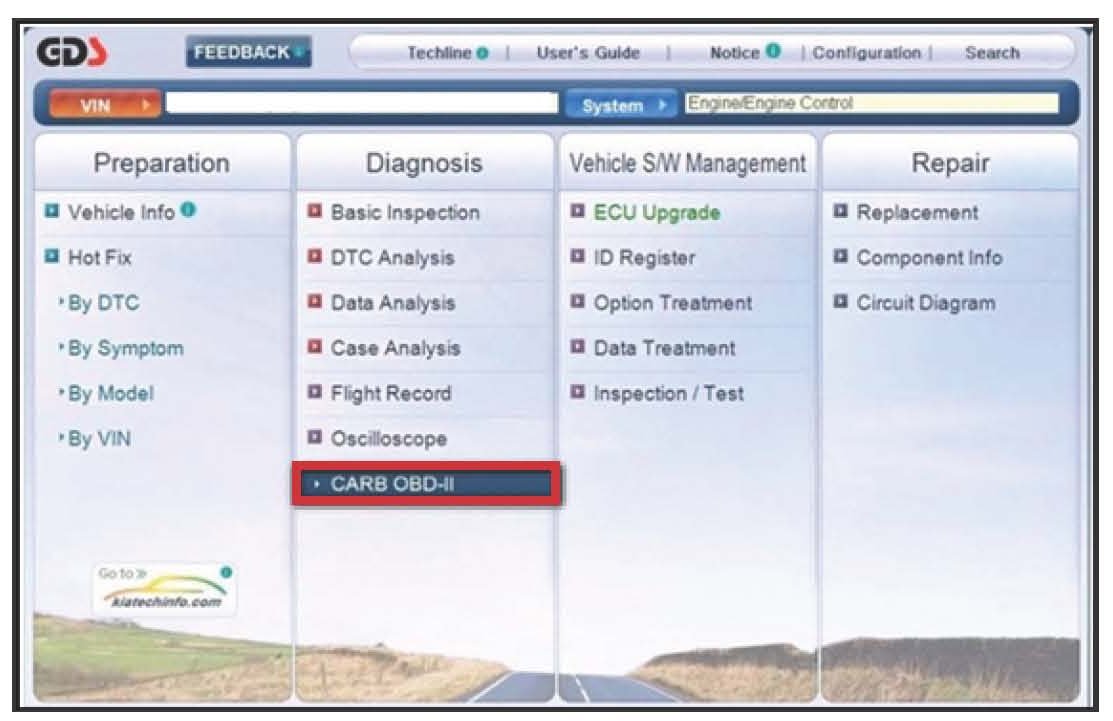 6. Then select "CARB OBD-II" under the "Diagnosis" tab.