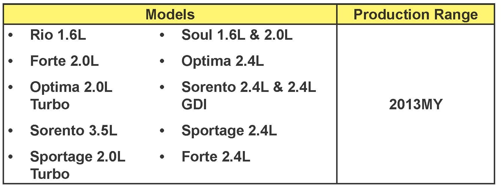 2013MY Rio 16L, Soul 16L & 2.0L,