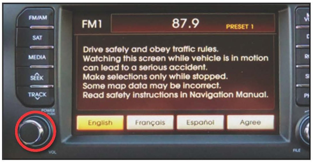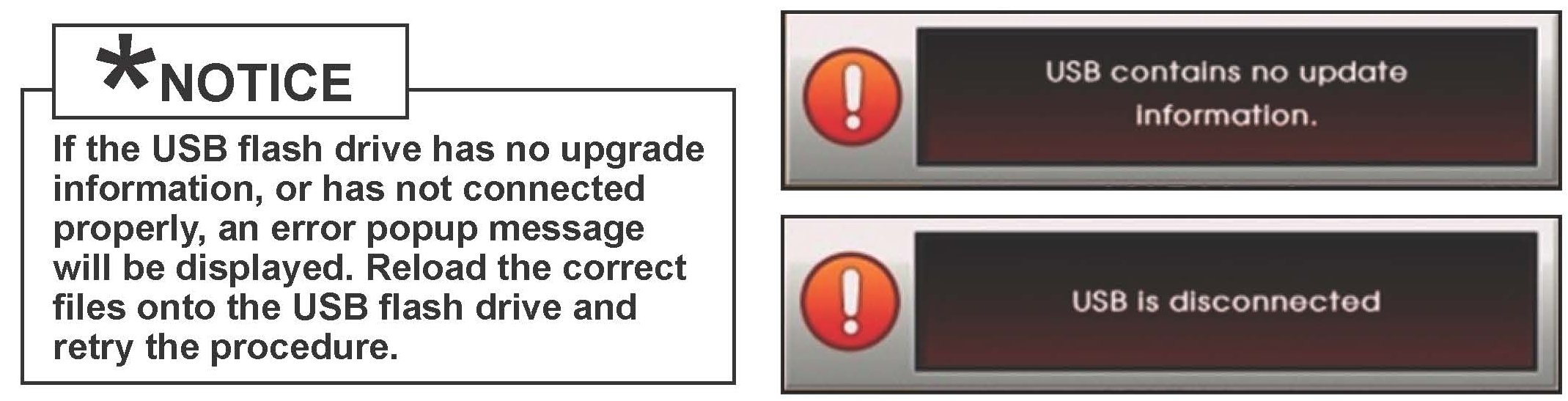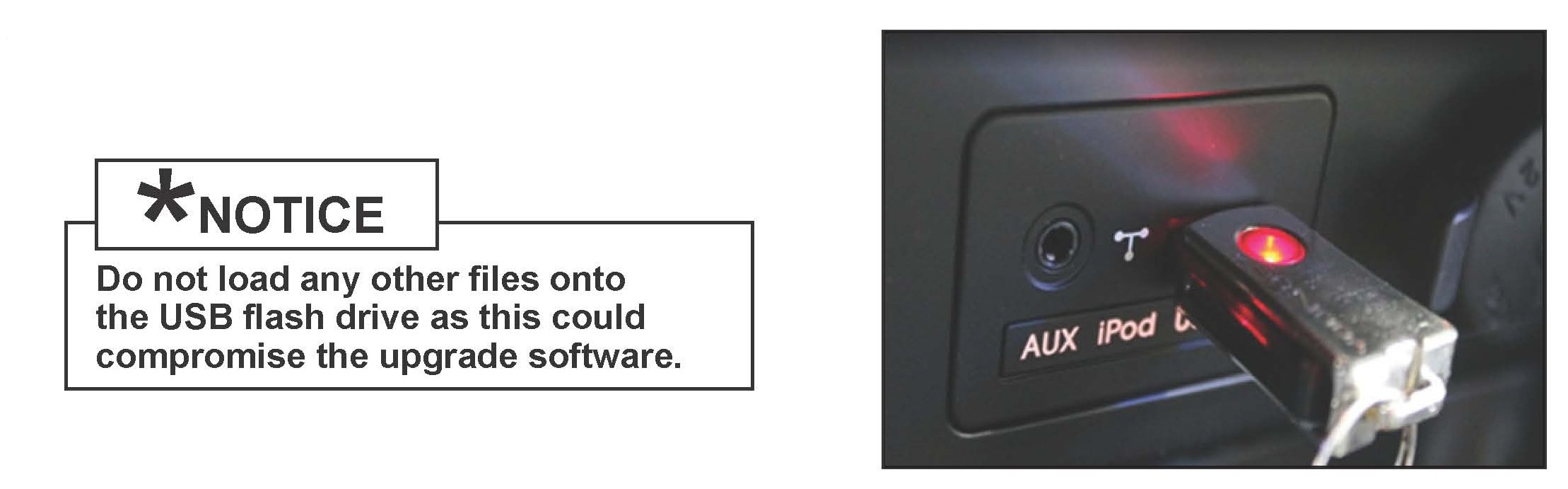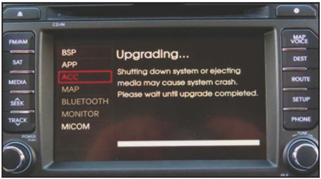 While conducting the software upgrade procedure, make sure to keep the ignition key in the "ACC" or "ON" position Do NOT turn the ignition key to any other position.
