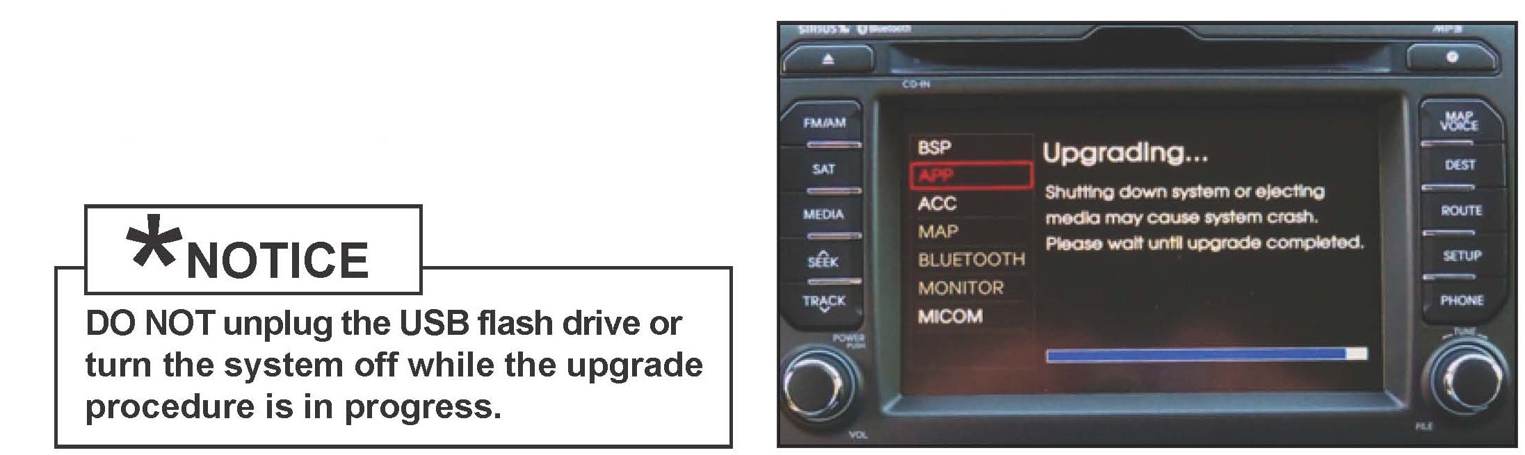 17. When the upgrade is complete, the AVN system will restart automatically. Remove the USB flash drive at this point.