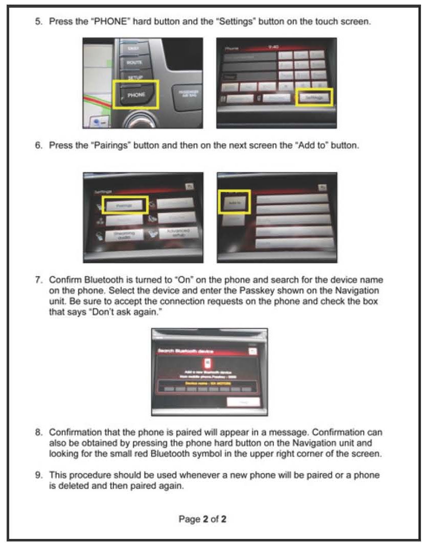23. Check the interior of the vehicle (i.e. glove compartment, center console, etc ) for phone pairing instructions, as shown below. Any instructions found should be removed from the vehicle and discarded as this update will modify the phone pairing logic to match the information in the owner's manual.