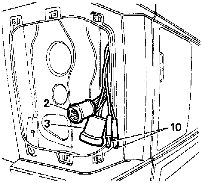 4. Feed the seven core cable Part No. PRC4143 (fitted with a pre-wired plug to one end-suitable for connection to pick-up point) down between the inner and outer body panels through the rear light opening.