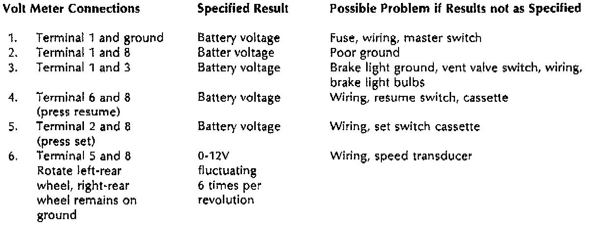All system testing may be performed with a multi-meter and jumper wire at the cruise control ECU connector.