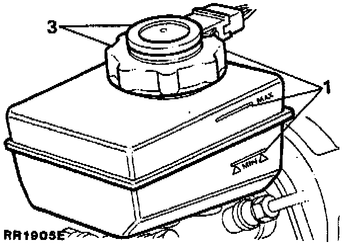 CAUTION: When topping up the reservoir care should be taken to ensure that the brake fluid does not come into contact with any of the vehicle paintwork. Should this occur, wash the affected area IMMEDIATELY with a large quantity of water.
