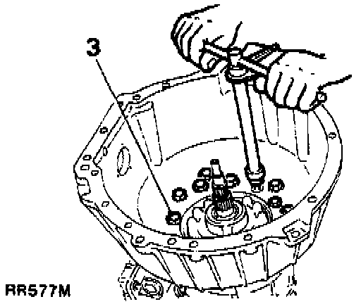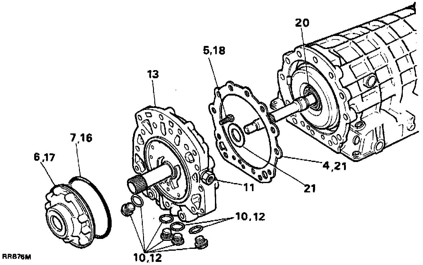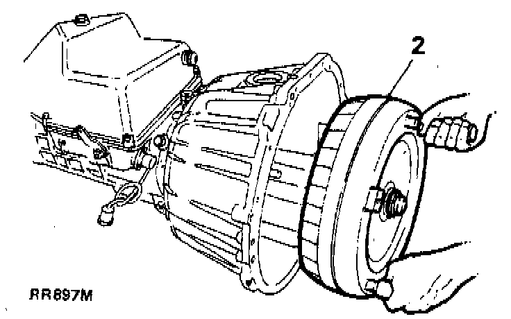 2. Place the transmission on the bench, and remove the torque converter using torque converter handles 18G1501, taking care not to damage the torque converter/oil pump housing oil seal.