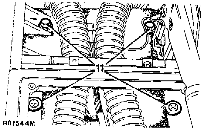 26. Remove the bolts securing the cross-member in position, using suitable equipment expand the chassis and withdraw the cross-member.
