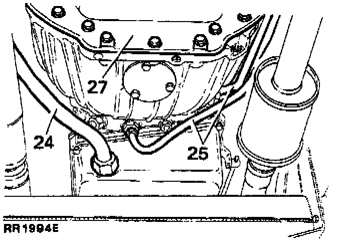 25. Disconnect the two oil cooler pipes from the rear of the transmission bellhousing.