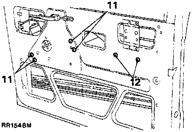 19. Remove the single bolt (spring and plain washer) from the edge of the door which secures the door rear frame.