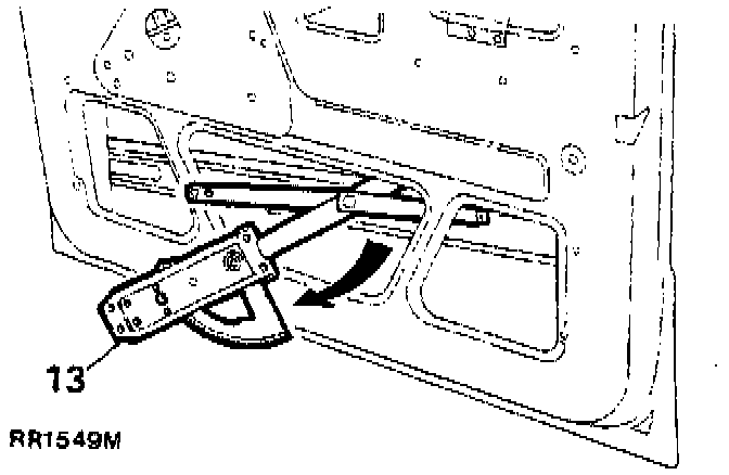 13. Disengage the lifting arm stud from the upper lifting channel, maneuver the window regulator and remove if from the lower center opening in the inner door panel.