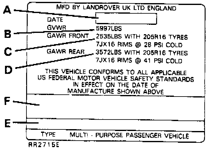 Vehicle Identification Label: