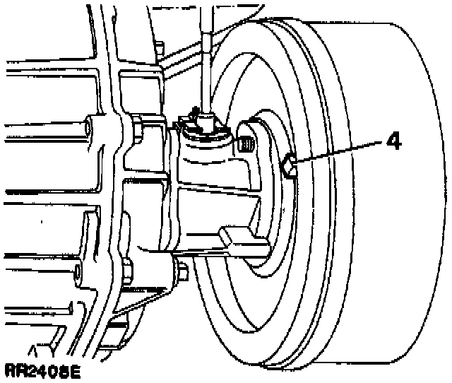 - From underneath the vehicle, rotate the adjuster (4) on the brake drum back plate clockwise until the brake shoes are fully expanded against the brake drum.