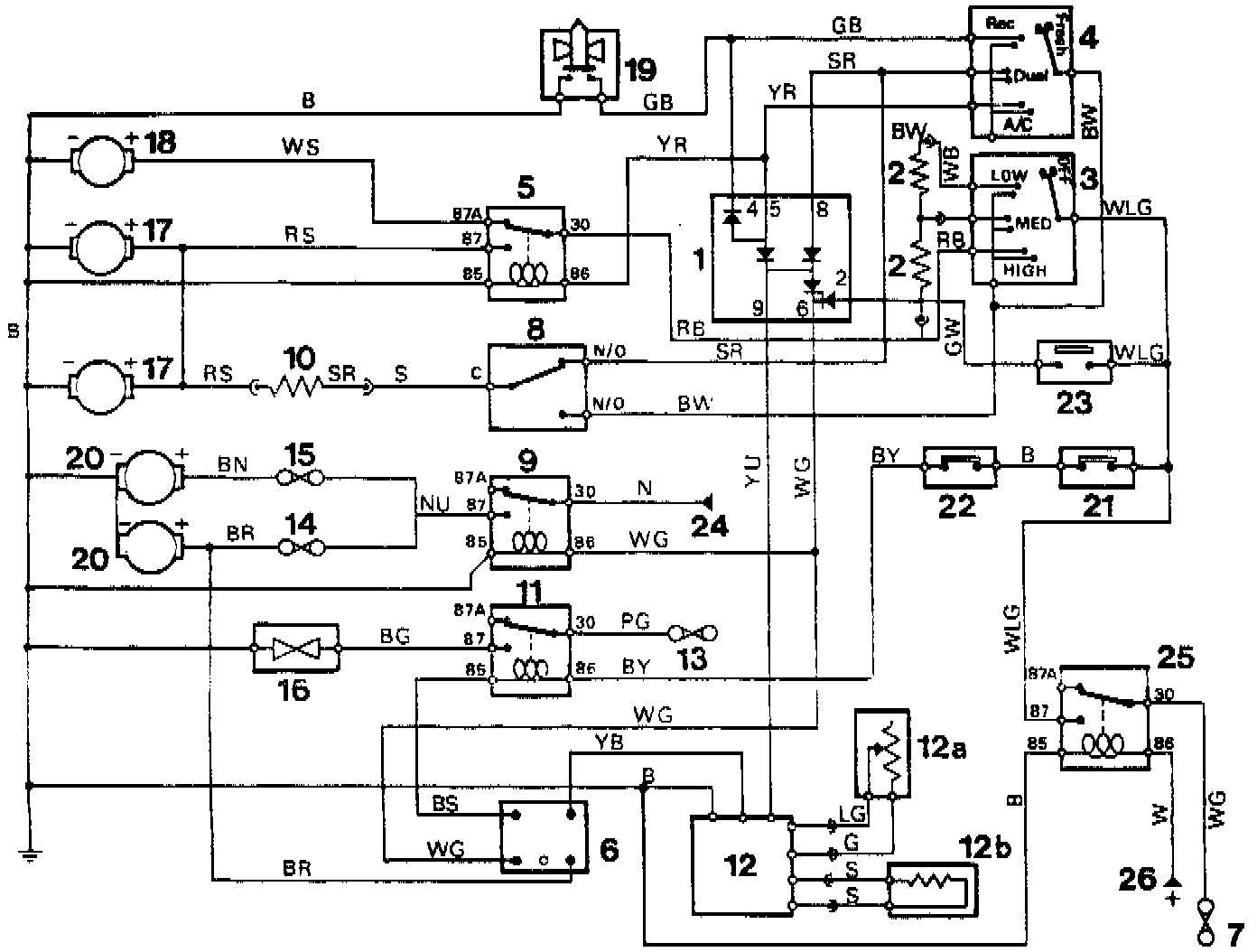 NOTE: See EFI circuit diagram for details of air conditioning inputs to ECU.
