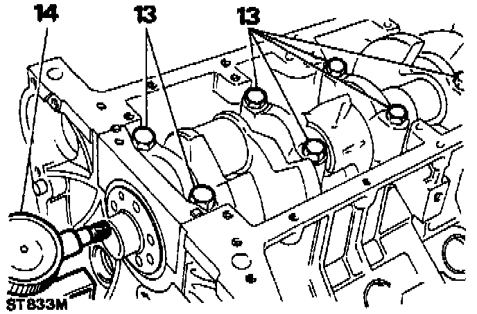 13. Tighten the main bearing cap bolts to: