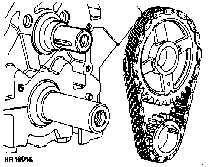 6. Engage the sprocket assembly on the camshaft and crankshaft key locations and check that the camshaft key is parallel to the shaft axis to ensure adequate lubrication of the distributor drive gear.
