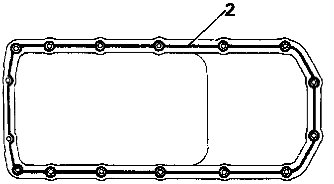2. Apply a 2 mm (0.08 in) wide bead of Hylosil 102 (Locktite 598 Black) to the joint face of the oil pan as shown.