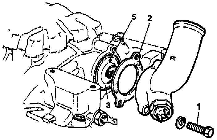 2. Clean the threads of the four long bolts and coat them with Loctite(r) 572 thread lubricant sealant. Locate the water pump in position.