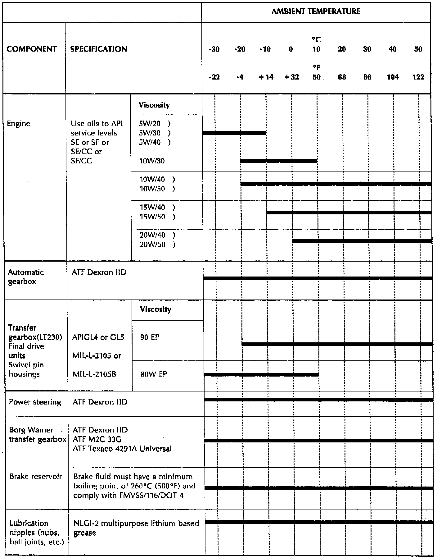 Fluid Type Specifications