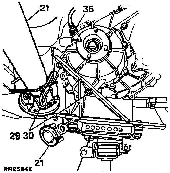 22. Release the clamp and withdraw the speedometer cable from the rear output housing. Free the cable from the clip at the left hand side of the transfer case.