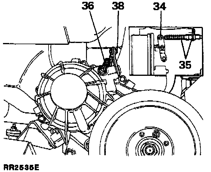 30. Using the two short bolts previously removed from the right hand gearbox mounting bracket, secure the adaptor plate to the gearbox.