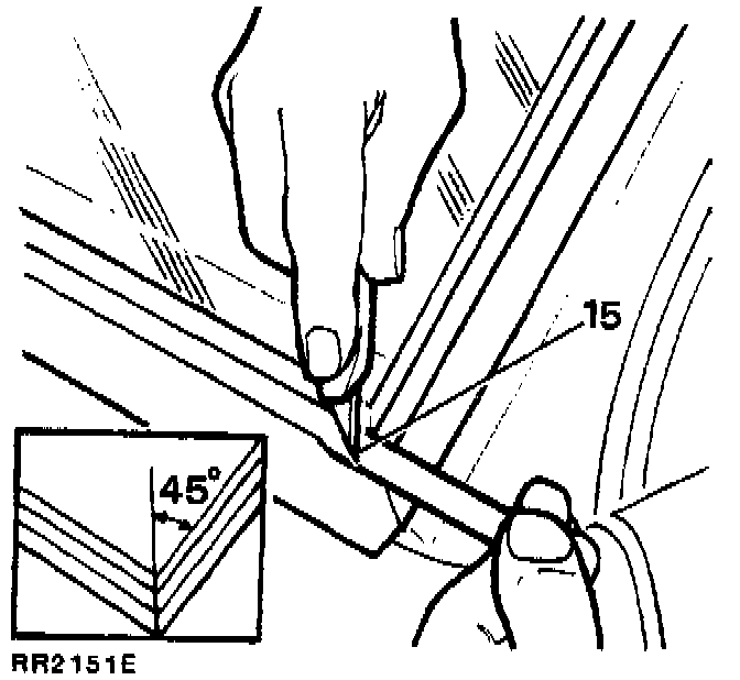 NOTE: To aid assembly of expander strip to the windscreen rubber apply a small amount of soap solution to the channel on the face of the rubber. Ensure that the soap solution is applied to the channel only.