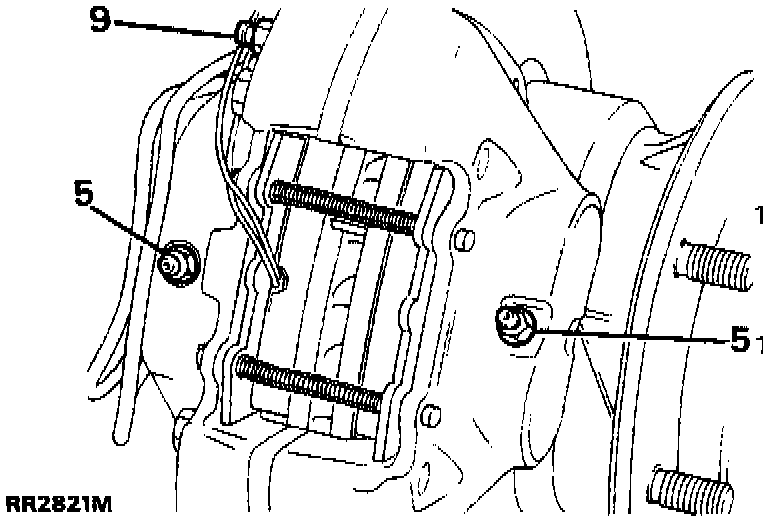 5. Bleed the four front caliper lower (hydrostatic) bleed screws in the conventional manner. Proceed in the order: outer bleed screw on the driver's side, opposite caliper outer bleed screw, inner bleed screw, inner bled screw driver's side. Depress the brake pedal slowly and progressively. Lock the bleed screw at the bottom of each stroke.
