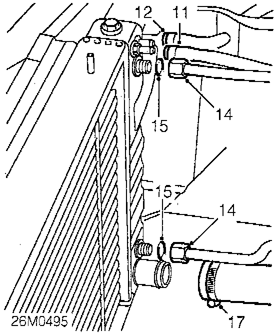 24. Connect oil cooler pipes to radiator and tighten unions to 30 Nm (22 ft. lbs.).