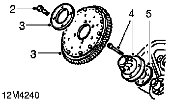 3. Fit drive plate assembly and buttress ring ensuring that reference marks are aligned or that paint mark is towards torque converter.